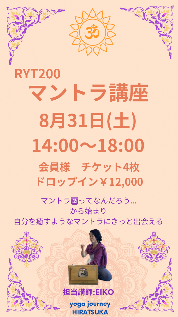 【平塚店】8/31(土) 特別講座 RYT200マントラ講座