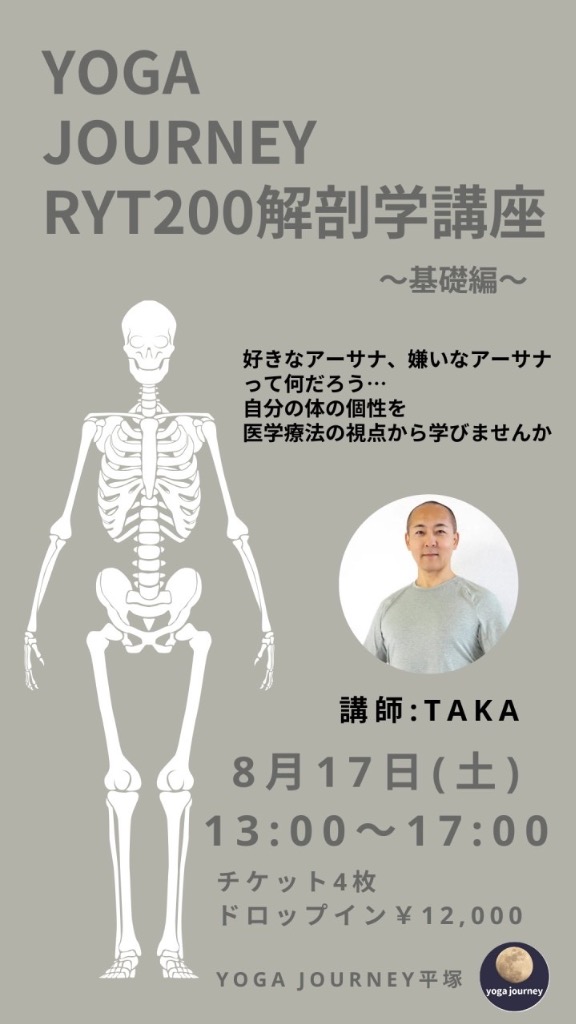 【平塚店】8/17(土) 特別講座 RYT200解剖学講座
